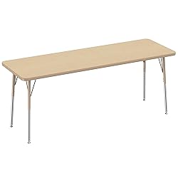 MULTI-PURPOSE ACTIVITY TABLE: 24" x 72" rectangle table with adjustable legs provides a durable, versatile space to work and play in classrooms, daycares, homes, churches and more STAIN-RESISTANT SURFACE: wipe clean laminate tabletop with mild soap and water solution for routine hassle-free maintenance T-MOLDING EDGE: sturdy plastic edge banding around table top helps protect from everyday wear and tear ADJUSTABLE HEIGHT: standard table legs adjust in 1" increments for table top heights from 19" to 30" to accommodate children, teens, and adults STABLE LEG DESIGN: slightly angled legs for reinforced stability feature self-leveling nylon swivel glides that adjust to uneven surfaces