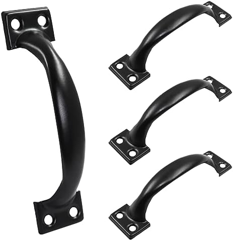 Piutouyar 4 Pcs Black Pull Handles, Vintage Style Barn Door Handles Metal Gate Pull Handle Cabinet Handles for Drawer, Dresser, Cupboard, Closet (4 Inch Length)
