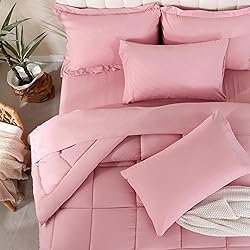 DOWNCOOL King Size Comforter Set, 7Pcs Bedding Comforter Sets Pink, All Season Down Alternative Bedding Comforter Sets with Comforter, Flat Sheet, Fitted Sheet, 2 Pillow Shams & 2 Pillowcases