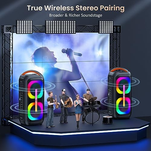 - 🔊Revolutionary TWS Function🔊: Prepare to be amazed by T11-T large karaoke machine's revolutionary TWS (True Wireless Stereo) function. Experience the power of connection as you wirelessly connect 2 units for an enhanced audio experience. Double the fun, double the volume, and double the excitement as you and your friends indulge in synchronized singing. With TWS technology, the sound expands, enveloping the room and creating an unforgettable karaoke adventure.