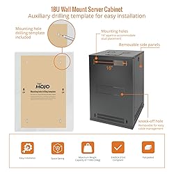 - Tecmojo wall-mount cabinets are designed to house, secure and organize the EIA-standard 19-inch rack devices in classrooms, retail environment, offices, and other locations with limited floor space. The frame is made from high quality cold rolled steel. The front door has glass and steel mesh option. Sturdy electro-static powder coating provides exceptional durability on the finish and can resist conditions found in non-IT environments such as warehouses and other retail locations. The enclosure is PCI & HIPPA compliant with locking door and side panel to protect your critical network equipment and help prevent unauthorized access. Front door can be installed on either side of the front cabinet to satisfy your door swing orientation preference. This unit comes flat packed with hardware for equipment mounting. Easy assembly is required. Available in 6U, 9U,12U, 15U and 18U configurations.