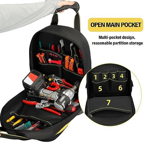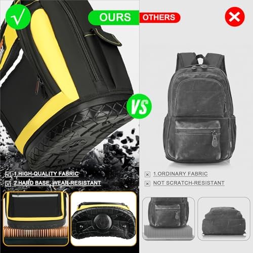 Tool Backpack,17"Heavy Duty Tool Backpack Bag with Waterproof Molded Base,Durable Multi-Use Pocket Electrician & Industrial & Construction Work Backpack,Black/Yellow