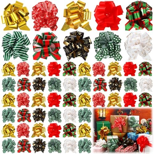 - Festive and Eye Catching: deck your halls, trees, and presents with these shimmering bows; These pull bows for gift baskets glisten and shine adding to the festive atmosphere, making Christmas merrier and more colorful; Whether you're adorning your home or lighting up a festive gathering, these bows spark joy and celebration