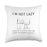 Programmer Gifts Accessories - K&K Programmer Shirt Lazy Coder Funny Engineer Developer Dev Tee Throw Pillow, 18x18, Multicolor