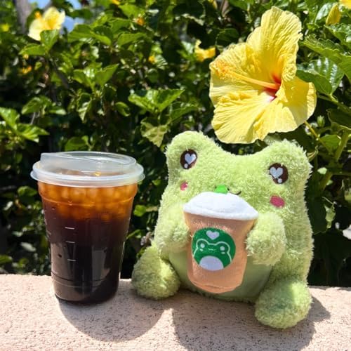 Cuddle Barn PlushGoals - Lil Series Scented Coffee Sippin' Wawa - Soft Lime Green Stuffed Animal Kawaii Frog Plush Toy, 6 inches