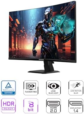 GIGABYTE GS27QC 27" 165Hz 1440P Curved Gaming Monitor, 2560 x 1440 VA 1500R Display, 1ms (MPRT) Response Time, HDR Ready, FreeSync Premium, 1x Display Port 1.4, 2X HDMI 2.0,Black