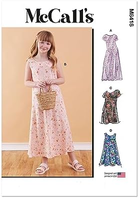 McCall's Girls' Sleeveless or Short Sleeve Dress Sewing Pattern Kit, Design Code M8418, Sizes 7-8-10-12-14-16, Multicolor