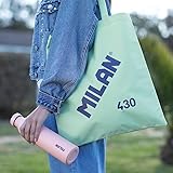 - Tote Bag 1918 Series Green Inspired by the original colors and design of MILAN erasers, manufactured in Spain since 1918. Ripstop outer fabric: lightweight and resistant to rips and tears. It uses a special technique that weaves thick reinforcement threads at regular intervals in a criss-cross pattern. Ideal for shopping, as a bag or for carrying everyday necessities. Composition: polyester. Dimensions: 0.5 x 38 x 41 cm. Handle length: 27 cm.