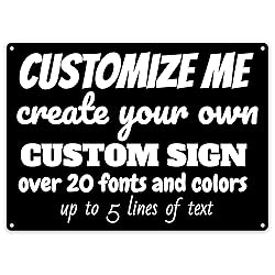 - YOUR SIGN, YOUR WAY: Want to make your own personalized sign? Simply click the “Customize Now” button to get started! Our custom signs give you the freedom to choose your font and font color to create a quality sign printed with vibrant colors.CREATED WITH PVC: PVC is a thicker, waterproof, UV, softer but durable material compared to aluminum. It is 4MM thick and comes precut with 4 holes to screw in or hang. Fully weatherproof and UV resistant.SIZE: Choose the right size from 7" x 10" all the way up to 12" x 18" - create a sign that is the right size for your business, office, or home needs.EASILY DESIGN AND APPLY: Simply choose from over 20 fonts and colors to create your sign. We utilize the best in the business to print our signs ensuring that the colors will pop and be vibrant.MADE IN THE USA: All our custom signs for indoors and outdoor are made right here in the USA following strict quality control guidelines at every step of the process.