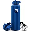 IRON °FLASK Camping & Hiking Hydration Flask with 3 Lids - Stainless Steel, Double Walled & Vacuum Insulated Water Bottle - Leak Proof & BPA Free (Cobalt, Straw - 40 oz)