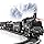 - Train Set What's included: The train set comes with a steam locomotive, a coal carriage, a fuel tank car and a cargo transport vehicle, 10 curved tracks and 4 straight tracks and a water bottle. The track layout dimensions of 55" (L) x 35" (W), and after putting 4x1.5AA batteries(not included), kids can turn it on to begin a fun voyage .You can put the train under your Christmas tree and it will go around it, making your Christmas more exciting. Spend the holidays with your family.