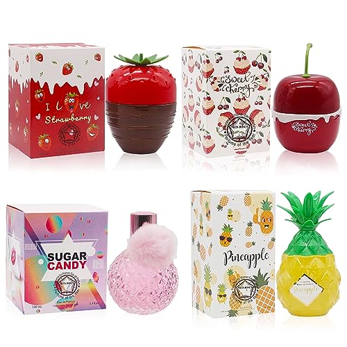META-BOSEM 4-Pc Perfume Collection Fragrance for Women (I Love Strawberry+Sweet Cherry+Sweet Candy+Pineapple), Eau de Parfum Natural Spray - Sweet Scent (Pack of 4) Each 3.4 Fl Oz, Total 13.60 Oz