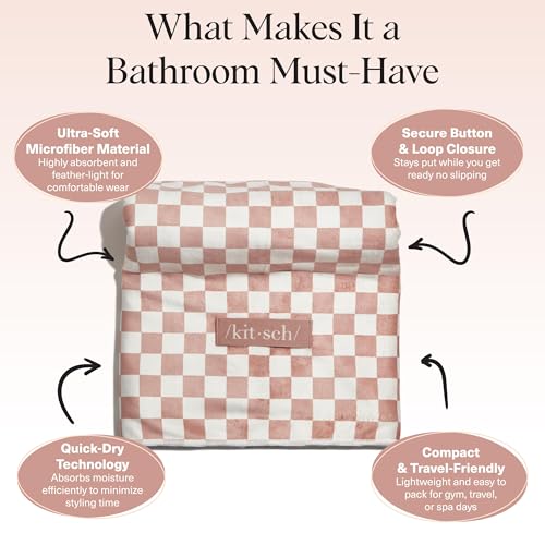 Kitsch XL Microfiber Hair Towel Wrap for Women – Ultra Absorbent Microfiber Towel for Wet, Curly, Long or Short Hair – Quick Dry, Anti-Frizz Hair Wrap – Terracotta Checkered, 40x24 inches