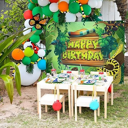 Reptile Snake Happy Birthday Banner Backdrop Jungle Wild Party Banner Decorations for Kids Safari Animals Snake Themed Photo Photography Prop Booth Background Supplies 70.87x47.24in-BECKTEN