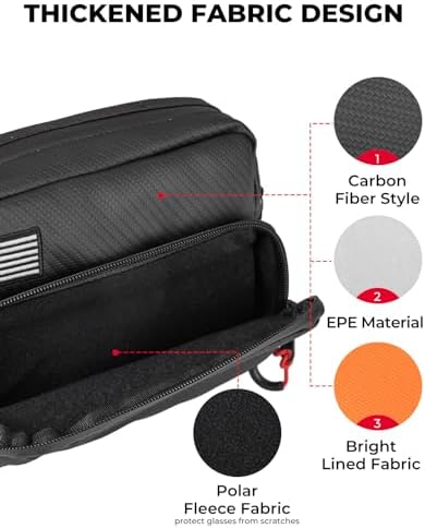 - ZIPPER GLASSES LAYER: The outer pocket is made of polar fleece fabric, in order to protect your glasses from scratches. It provides the ability to store more sensitive items in the pocket