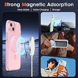MILPROX Compatible with iPhone 15 Case - with Screen Protector - Compatible with MagSafe - Magnetic Clear Trasparent Design - Non Yellowing Anti Slip - All PC Protective Phone Cover - Pink