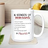 - Personalized Programmer Coffee Mug 11 Oz 15 Oz, 6 Stages Of Debugging White Teacup, Programming Coffee Cup Gifts for Men Women Coworkers, Coder Travel Mug, Debugging IT Ceramic Mugs Cups Custom Name CUSTOMIZATION is a great way to put a punch on a present when you hand out someone. Click "Customize Now" to begin creating your superbly made coffee mug.✔ The Best Ceramic Coffee Cup You Will Own:⌑ The personalized 6 Stages Of Debugging white coffee mug cup is constructed of ceramic with excellent quality. After repeated use, the pattern will not fade or peel in any temperature, hot or cold.⌑ Unique customized coffee cup is completely dishwasher, microwave safe. You may quickly reheat drinks in a microwave and wash the mug in the dishwasher.⌑ This novelty ceramic coffee cup is available in two sizes: 11 ounces and 15 ounces. That will provide a choice that suits your demands. Maintaining your morning coffee satisfaction will help you get ready for the day like never before.✔ Perfect Mug Gift For Someone Special:⌑ These travel coffee mugs make wonderful Valentine's Day, Father's Day, Mother's Day, Christmas, New Year, Graduation, Anniversary, Retirement, Thanksgiving, Engagement, Wedding, or other gift-giving events.⌑ Give this unique coffee cup to a loved one or treat yourself. Makes a thoughtful present idea for Programmer, Programming, Debugging, Coder Coding, IT Support, Computer Software, Web Developer, Men Women, Friends, Dad Mom, Co-worker, or other significant people.✉ If you have any query about your purchase or about products, please send us a message. We will respond to you as soon as we can. Your satisfaction is always our top priority.