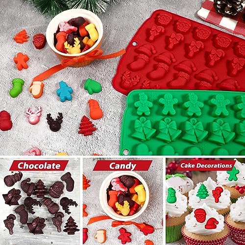 - New Design: 10 Christmas elements (Santa head, candy canes, Santa hat, Christmas stockings, reindeer, gingerbread man, jingle bells, gloves, snowman, Christmas tree), create more holiday fun, perfect for making candies, gummies, hard candy, chocolates, cookies, jellies, wax melts, ice, resin, cake decorations and more. Makes it easy to create the perfect dessert.