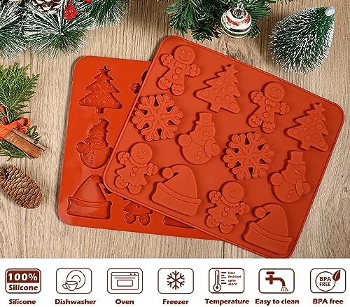 - New Design: 5 Christmas elements (gingerbread man, Christmas tree, snowflake, snowman, Santa hat), create more holiday fun, perfect for making biscuits, candies, gummies, hard candy, chocolates, cookies, ice, resin, cake decorations and more.