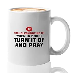 Tech Support Coffee Mug 11oz White -Troubleshooting 101 - Computer Science Tech Web Developer IT Database Programming Deging Coding Software