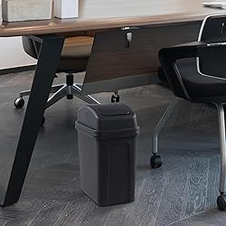 Size: 9.84" x 6.49" x 13.19", capacity of about 2 gallon Made of strong plastic, with long-term durablity, easy to clean Slim shape trash bin perfects for narrow space and room corners, such as bathroom, toilet, office, bedroom, under the table Swing-top, covering trash out of sight, easier throwing trash with a sligt push Small and easy to lift, it can also be used as a car trash can