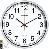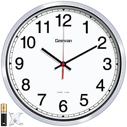 - Geevon 12 Inch Atomic Analog Wall Clock Battery Operated, Sets Automatically , Easy to Read Atomic Clock for Kitchen/School/Classroom/Living Room (Silver Frame) [Matte Silver Frame] The frame of this atomic wall clocks battery operated is made of silver ABS which adopts a simple and stylish design, offering a sleek elegant decorative touch for any room, especially perfect for bedroom, living room, kitchen, office, hospital, office, gym, classroom and so on. It is the the excellent as a Mother's Day gift. [Easy to Read] The pure white clock face contrasts with the bold large black digits, clear bold numbers help you to read the time more easily from many angles. Adopts an upgraded high hardness and high definition glass, which can make the surface of the battery clock clearer while ensuring durability.It is suitable for children, students, adults and the elderly.