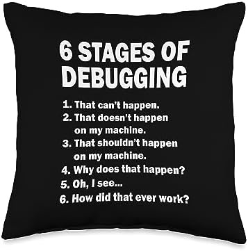 Computer Science Programmer Software Engineer Gift Funny Coding Programming Saying 6 Stages of Debugging Throw Pillow, 16x16, Multicolor