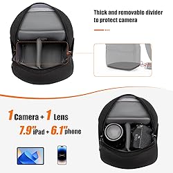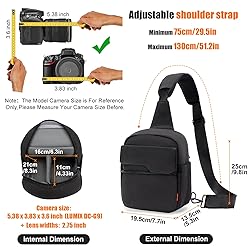 ✅【Compact & Lightweight】Measuring 7.7"L x 5.3"W x 9.8"H and weighing only 1.2lb, this camera bag has a compact design and is lightweight, making it easy to carry around. It able to accommodate 1 DSLR + 1 Lens, is perfect for small cameras, mirrorless cameras, and compact cameras. The camera crossbody bag is also suitable for photographers who need a portable option. ✅【Customizable Space for Your Gear】With removable padded dividers to create the perfect space for your camera and lens easily, you can adjust the space to fit your gear perfectly. In addition to the main compartment, this camera crossbody bag also features two front pocket, two side pocket, and an back pocket, providing additional space for small accessories like batteries, SD cards and filters. while there are two inner padded pocket can hold a 7.9-inch iPad tablet and a 6.1-inch cellphone ✅【Quick Access to Your Camera】The unique slant opening double-way zippers provide quick and easy access to your camera and accessories, making it easy to get the shot you need. No more fumbling around looking for your gear, our camera sling bag has got you covered. ✅【Durable and Built to Last】Made from 16oz canvas and 7-layer 18mm thickened EPE foam padded, makes this camera messenger bag anti-shock and durable. our photography bag is built to withstand the rigors of travel and daily use. It's a perfect DSLR bag that will keep your camera and accessories safe and secure for years to come. ✅【Comfortable and Easy to Carry】The adjustable shoulder strap and top handle provide multiple ways to carry this camera bag, ensuring comfort and convenience during long photography sessions. The length of the shoulder strap is adjustabled from 29.5-51.2 inches to ensure a perfect fit for any body type. An ideal Christmas, birthday gifts for women and men. ✅【Satisfation Service】If you encounter any issues with your bag within one year of purchase, we will provide you with a new product. We are committed to providing high-quality products and excellent customer service.