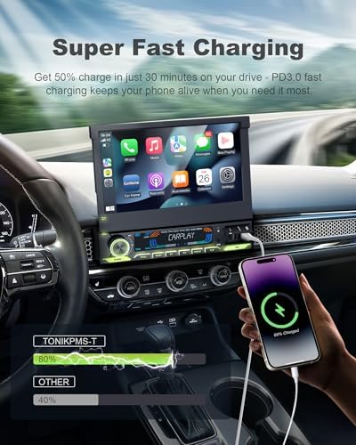 - 【Carplay&Android Auto, Zero-Lag Performance】 → Zero-lag smartphone integration via direct USB-C connection (no Bluetooth delays). → Charge 3X faster with built-in PD3.0/QC3.0 tech in the dedicated Type-C port – fully recharge phones during short commutes. Preserves cigarette lighter socket for other devices