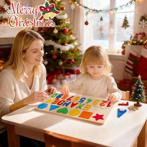 • [Educational Toy] As a high-quality wooden educational toy, it allows 1-3 year old toddlers to develop essential skills like fine motor skills, hand-eye coordination, color recognition, and shape identification while playing. It encourages problem-solving abilities during play.