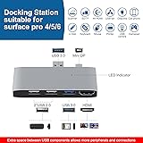 - Surface Pro 6/5/4 Docking Station USB Hub USB 3.0Premium Aluminum Materials, Compact, and Lightweight DesignSpecification:Material: AluminumCompatibility: Microsoft Surface Pro 4 Surface Pro 5 Surface Pro 6Connectors-Input: 1 USB 3.0 port, 1 Mini DP port.Connectors-Output: 2 USB 2.0 ports, 1 USB 3.0 port,1 4K@30Hz HDMI port, USB2.0 SD & Micro SD card slot.Plug and play 1x USB 3.0 Port1x USB 3.0 port, up to 5Gbps,10X fast than USB 2.0 hub. Transfer videos and images just in seconds, saving your time.2x USB 2.0 PortsThe 2xUSB2.0 port can be connected to the mouse and keyboard, making it more stable to use.4K@30Hz High DefinitionMultiple hub adapter with 12.00mm distance between USB to mini DP, provide a 4K@30Hz high definition pictures or videos transfer for you through the 4K HDMI port.Premium Aluminum Materials, Compact, and Lightweight DesignOur USB Hub is made from premium Aluminum materials that compliment the latest devices on the market; The adapter is compact and easy to fit into a pocket or bagNote:It' won't fit your Surface very well if you have a protective case on it.This dock does not fit surface pro 3/7/8/9/X laptops.After-sale serviceIf you have any problems with your product, please feel free to contact us through email. We are looking forward to offering our best service to you and your problem shall be solved timely.