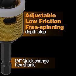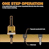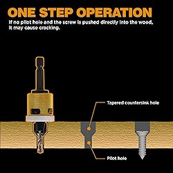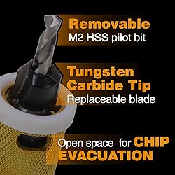 [Carbide tipped]: Easier, Cleaner and more Durable than HSS. [Free Spinning Collar]: No surface scratches and no marrings. [Quick release]: Quick release Hex shank. No Wobble. [New Features]: Both the blade and the drill bit are replaceable. Try a few holes to make sure it's your desired depth and hole diameter. Once set, you'll get repeatable countersinking. [Wide Applications]: suitable for MDF, Plywood, Non-Ferrous, Chipboard, drywall, woodworking.