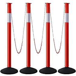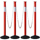 - 4 Pack Adjustable Traffic Delineator Post Cones with Weighted Base & Reflective Collars, Orange Traffic Safety Barrier with Plastic Chains for Parking Lot Driveway Road