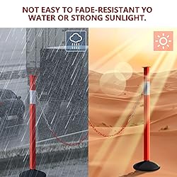 Removable & Adjustable Design: Adjustable Traffic Delineator Post cones with a weighted base to provides stability. So it is not require filling it with water or fine sand. The traffic barrier bar's height can be easily adjusted to fit any need. Eye-Catching Orange Color: The bright orange color of the Parking Delineator Post makes it highly visible in any weather condition or lighting situation. It can catch people's attention to provide a warning effect. Premium Material: The traffic delineator post cones are made of durable plastic. The portable parking pole barrier can be used for a long time in hot sun or rain, even in other harsh environments. Easy to Install: 4 Pack traffic cones can be assembled and disassembled quickly and easily in a small space, like your car or garage. There is a simple connection buckle structure, no installation tools are required. Multiple Uses: The traffic delineator post cones have multiple uses, used to remind people safe. Perfect for the parking lot, sideways, construction.