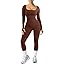 Popilush Jumpsuits for Women Long Sleeve Built-In Bra Square Neck Full Length Leggings Bodycon Stretch Workout Outfits
