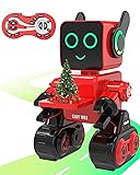 okk Robot Toys for Kids, Programmable Remote Control Robot, Interactive Toys with Coin Bank, LED and Tray, Walking Talking Singing Dancing Gift for Boys Girl(Red)