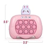 - QUICK REFLEXES MEET SUPERSIZED SMILES Indulge their Senses The kiddo-pleaser you can take wherever you go! Whether you’re looking for a memory game to sharpen your little one’s mind, a travel toy to keep them occupied on the go, or just a delightful way to keep your precious one occupied away from screens, this quick push game will do the trick. It stands out with 4 modes, pop-it style buttons that feel great to the touch, melodic music, and lights to spark hours of fun. Check out the fun modes: Mode 1: It requires the circles to be pressed in any order once they light up. It features 50 levels with timed music. As the levels progress, the time gets shorter, the music plays faster, and more circles need to be pressed. Mode 2: This is a memory game, which involves the circles briefly flashing in a particular order. Press the circles in the right order to proceed to the next level. Mode 3: This is a game of mental endurance. Buttons light up continuously and the player needs to keep up. Mode 4: This accommodates 2 players, with the buttons lighting up on different sides of the console. Here’s why you’ll love this game: - Keeps kids occupied at home or away. - The pop-it buttons feel great to the touch. - Can be played with the music on or off. - The 4 modes cater to kids of most ages. - Great as a travel toy for road trips or flights. - Comes with a cute bunny head that can be attached at the top. - Conveniently powered by 3 x AAA batteries (not included) - Instructions are included to explain all the modes. - Makes a great gift for kids ages 3 and up. Go ahead, give that little one something to smile about!