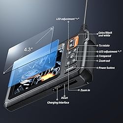 - Endoscope Camera with Light, Inspection Borescope Camera with 4.3" IPS Screen, 1920P HD with 8 LED Lights, 16.5FT Semi-Rigid Cord Bore Scope, IP67 Waterproof Endoscope for Sewer, Tools(Orange)