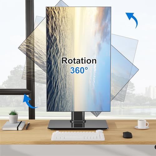 - Ergonomic Design - Comes with adjustable bracket offering tilt +30°/- 30°, swivel +45°/- 45°, rotation 360°, and height adjustment up to 6.89" to fit different sitting or standing positions. The free-standing design is more convenient and no need for drilling any grommet hole or using any clamp.VESA mount offers improved viewing comfort for you
