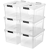 JUJIAJIA 19 Quart Plastic Storage Bins with Lids, 6-Pack Stackable Clear Storage Organizing Box with Handle