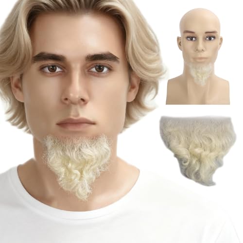 Short Curly Fake Adult Realistic 100% HandKnoted Fake Mustache Stage or Halloween Costume Mustache Goatee (Light Golden)