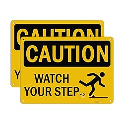- Watch Your Step Sign Caution Sign uses aluminum metal which is more durable and environmentally friendly than other materials.The bright yellow main color of this sign can attract everyone’s attention, even at night. Size: 10 inches x 7 inches, Conspicuous words.Package:2 signs for Be careful of wet floors and stairs. excluding attachment accessories such as screws, zip ties, nails ect.Material: Made out of Heavy Duty Rustproof Durable .040 Aluminum. No magnetism, will not affect electronic equipment.Can do whatever you want, High quality reflective film. Installation: Pre-drilled holes in the four corners and can be easily mounted on any surface. Market School Hospital.....Durable and No Fading: Anti corrosion/Ultraviolet, waterproof, weatherproof, Rust free and fade resistant. no matter it is windy or rainy, thunder or snow will not affect the sign.Warranty: Service life up To 7 Years indoor & outdoor use.Worry-free 2 years warranty and 7 days 24 hours online customer service. T&R is committed to using products to bring practicality and happiness to customers.