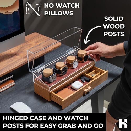 Holme & Hadfield Premium 4-Slot Wooden Watch Display Case – Handcrafted Men’s Watch Box with Accessory Drawer, Hinged Cover, Leather Lining – Birthday Gift for Collectors – Luxury Built to Last