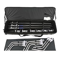 Fits three C stands with removable base for easy transport. Inner length is 53.1inch/135cm, it is long enough to load most C stands and light stands. Adjustable lid straps keep bag open and accessible. Large pocket on lid interior packs umbrellas, reflectors or soft boxes. Water-resistant premium 1680D nylon exterior with extra reinforced armors.This C stand carrying bag also has durable wheels with ball-bearing. Removable padded dividers and room for grip arms and accessories. Internal size: 53.1x14.2x7.1 inch/135x36x18 cm; External size (with casters): 56.3x15.7x8.7 inch/143x40x22 cm; Net Weight:21.8 Lbs/9.90 kg. It is an ideal light stand and C stand rolling case. 【IMPORTANT NOTICE】This case is not recommended as a flight case.