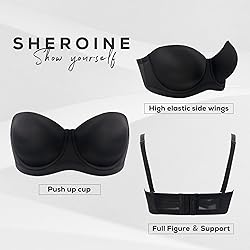 sheroine Strapless Push up Plus Size Lightly Lined Bra Underwire Multiway Full Coverage Padded Large Breasts Bras