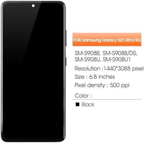 - 【Parameters】For Samsung Galaxy S21 Ultra 5G LCD screen (not for Samsung Galaxy S21/s21 plus) replacement, 6.8inches, 1440x3200 pixels, please confirm your phone model before purchasing.