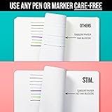 【UNLEASH YOUR CREATIVITY】 STM A5-sized (5.75" x 8.25") Lined journal notebooks seamlessly blend elegance with functionality, perfect for various uses like writing, sketching, note-taking, bullet journaling, travel logging, or daily reflections, wrapped in a vegan leather cover that mimics the finesse of real leather. 【SUPERIOR WRITING COMFORT】 Enjoy smooth, fatigue-free writing Graph AW115 notebook with thicker pages , 120gsm (FSC certified) acid-free paper that prevents ink bleed-through and ghosting, bound in a way that ensures “lay flat” pages for comfort, whether you’re left or right-handed. -AW139 【SMART STORAGE SOLUTIONS 】 STM leather lined journal accompanying storage box and catalog label stickers assist in easy identification and organization of archived journals, while built-in pockets in the front and back covers securely hold loose notes, business cards, and receipts. 【EXTRA FEATURES YOU’D WISH FOR】 Securely close your journal with a durable elastic band, keep your favored pen handy with the built-in pen loop, and effortlessly navigate through your notes with two colored bookmarks. You'll stay organized and inspired throughout your writing journey. 【THE PERFECT GIFT FOR EVERY OCCASION】 Encased in minimalist black packaging with other delightful goodies, the STM lined journal notebook serves as a splendid gift for both men and women, suitable for personal and corporate appreciations. Watch as their eyes light up with joy.