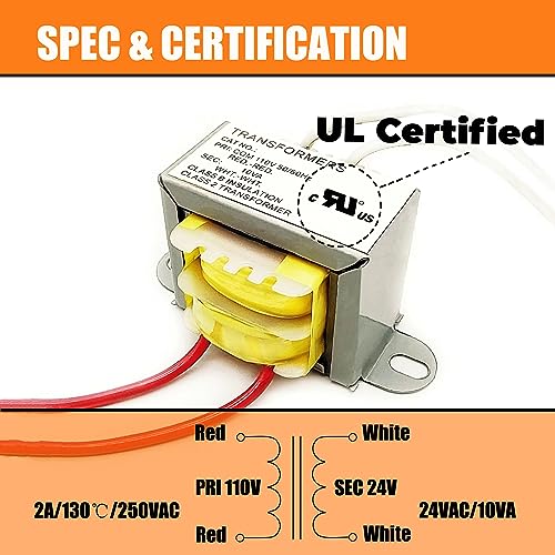 - User-Friendly and Environmentally-Conscious: The Simple Configuration Primary Voltage 110V AC, RED. Secondary Voltage: 24V AC, White, Single Phase Transformer Design Minimizes Wiring Errors, A Bolstering Safety Power Converters For Users of All Levels, Including Beginners. This 24V Transformadors With UL-Listed Compact Form Factor, Lightweight Build Reduces Resource Usage, While Optimized Design Decreases Losses and Heat Generate, Promoting Energy Efficiency and Environmental Sustainability.