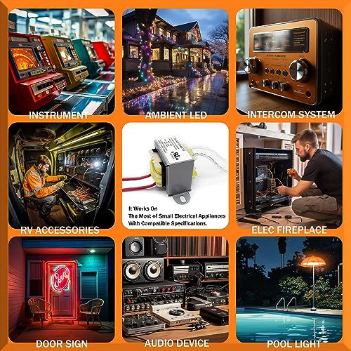 - Flexible Power Supply Solution: With a Rated Capacity of 10VA , This 24v Transformer Provides Enough Power to Drive Different Types Of Low-voltage Electrical Equipment, Making It Suitable for Use as a 24VAC Power Supply in Various Applications Such as Audio Devices, Lighting Power Supplies, Furnace, Fan, Instruments and Meters, Synchronous Motor, RV Accessories Replacement, Intercom System, Garden Irrigation, and Other 24V AC Voltage Adaptive Products.