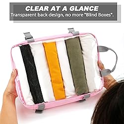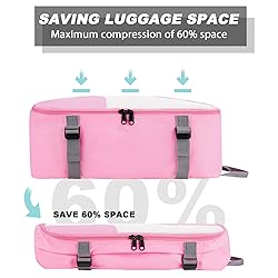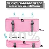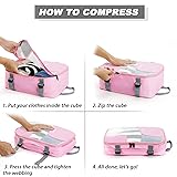 Compression Packing Cubes for Suitcases, COOSKY 6 Set Transparent Clothes Organizer for Travel Essentials, Expandable Storage Bags in Luggage, Carry on Size Travel Accessories for Women/Men, Pink